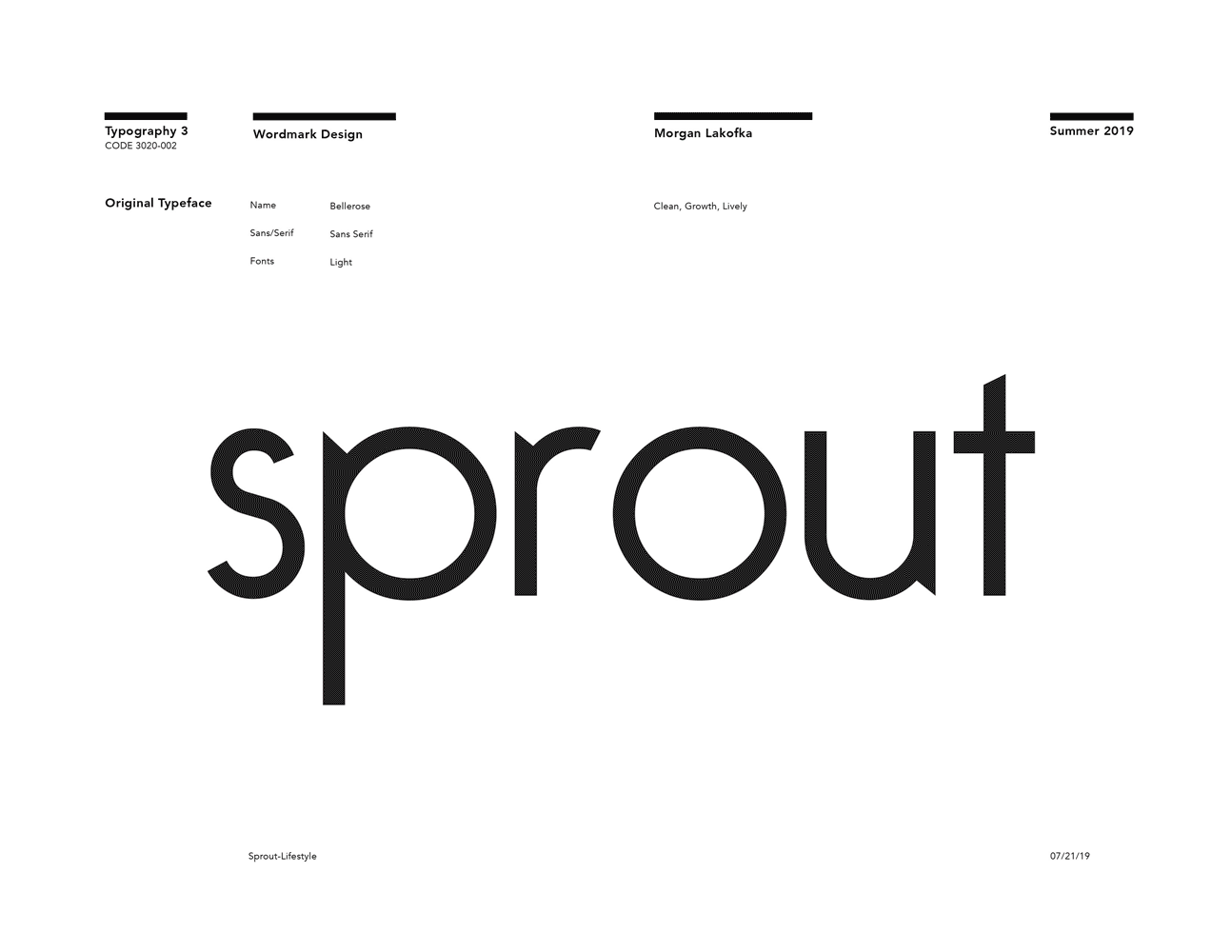 Design Proposal: Sprout is a lifestyle magazine focused on gardening. The articles are directed towards a beginner audience focusing on tips and tricks to growing successful gardens. The title of the magazine is sprout which helps to convey the idea of a starting point through one of the beginning stages of growth. The beginner audience won’t feel overwhelmed or intimidated by the idea of complicated gardens, keeping the content and layout very clean and simple. The magazine will be modern with earthy tones. The wordmark will convey growth and beginning, to set the tone of the magazine. The wordmark will be in all lowercase letters to help convey the possibility of growth. It will also be manipulated to look like it has life.